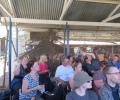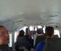 Tegen 2 uur worden we opgepikt en mag ik met 8 anderen in 1 vliegtuig, de andere 6 gaan het andere vliegtuigje in. Wij blijken het vliegtuig helemaal voor onszelf te hebben. Je zit hier gewoon vlak achter de piloot en Jean mag zelfs naast hem zitten voor de betere gewichtsverdeling. Ik zat eerst helemaal opgevouwen, maar na het wisselen met Hanneke zat ik op een prima plek. Dit is toch het echte vliegen in zo’n klein vliegtuigje, veel leuker dan in een grote Boeing. Alhoewel Lizette het maar helemaal niets vond.