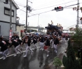 We gaan door met de bus en nu naar een excursie die niet in het programma staat. Shoestring had Ben er op gewezen dat er in Kishiwada deze week het Danjiri Matsuri festival gehouden wordt. Tijdens dit festival worden er grote karren door een heleboel jongeren (vanaf een jaar of 6-7 to 20-ers schatte ik zo in) worden voortgetrokken. Op die karren zitten mensen en een paar staan zelfs op het dak. Af en toe gaan ze dan door haakse bochten met veel spektakel. Ook hier regende en waaide het en binnen een paar minuten was mijn broek al zeiknat. Maar het was het wel waard! Heel leuk om te zien en ik heb een paar filmpjes gemaakt. De mensen zijn hier ook heel vriendelijk, we werden zowat bij mensen naar binnen gevraagd om te schuilen voor de regen.