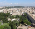 Omdat wij vanavond ook een avondtour door de stad doen mogen we ook vanmorgen met de bus de stad in. Dat scheelt weer want anders zouden we met het openbaar vervoer moeten gaan en daar ben ik geen fan van. Het is half bewolkt en in de zon loopt de temperatuur flink op. Het verkeer naar Rome is een ramp en we doen er dan ook dik 2 uur over om de 20 kilometer van ons hotel naar Rome af te leggen vanwege alle files. Onze eerste stop is de St. Pieter waar we de hele ochtend voor gereserveerd hebben. We hebben weer geluk want de rij is niet lang. Binnen is het een en al pracht en praal en ik begin maar met een rondje lopen en veel fotograferen (wat zowaar mag hier). Daarna ben ik de koepel op geklommen waar je een waanzinnig mooi uitzicht hebt over de stad en het plein voor de kathedraal. De klim omhoog is echter wel door smalle gangen en trappen, heel claustrofobisch en benauwd warm.