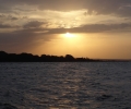 Er is pas na 18:30 warm water dus gaan we eerst maar eens wat rondlopen en foto’s maken. Aan een zijde van het complex blijkt een aantal apen in een boom te zitten, ik heb echter geen idee wat voor apen. Ik maak ook nog een paar mooie foto’s van de zonsondergang en neem nog een baco voordat we om 7 uur gaan eten. Dat eten was overigens wel beperkt, er was alleen wortelsoep, kip met rijst en gebakken banaan. Ik beperk me tot de kip met rijst die overigens wel erg lekker is. We blijven nog even hangen maar iets na negen uur ga ik toch maar eens naar mijn kamer om te douchen. We hebben een soort bouwlamp meegekregen want in de kamer is geen licht. Ook geen stroom merk ik als ik mijn oplader in het stopcontact stop. Dat is wel balen. Als ik in de douche het water aanzet zie ik een enorme spin weglopen (type tarantula), terwijl ik dit achter de klamboe zit te typen heb ik nog steeds geen idee waar hij gebleven is…