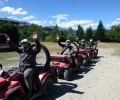 Terug in Queenstown ga ik met Ralf, Marco en Geert een quad tour doen in de bergen. We stappen in en bus die eerst nog wat andere mensen ophaalt en ons dan naar de start van de route brengt. Daar kunnen we onze schoenen wisselen voor laarzen (ik hou mijn bergschoenen gewoon aan) en krijgen we een jas, een helm en een bril. Er moeten ook nog wat papieren getekend worden en dan krijgen we bij de quads een korte instructie over de werking. Vervolgens doen we eerst een paar rondjes voorzichtig aftasten en dan wat moeilijker rondjes om te oefenen in overhangen als je op schuin terrein rijdt (zodat de quad niet omvalt). Best even wennen want je moet je gewicht (lees: je achterwerk) van links naar rechts schuiven.