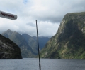 Wij stappen de boot in en varen 2,5 uur door de Doubtfull Sound. Een prachtige omgeving met mooie uitzichten, soms mysterieus in nevel gehuld, het kevert mooie plaatjes op. Het grootste deel van de tour sta ik op het topdek en dat valt soms niet mee, met name als de boot met 40 km/u tegen de wind in vaart. Dan waaien de stiksels bijna uit je jas. Maar op een punt liggen we ook even stil en wordt de motor uitgezet, en dan besef je pas echt de schoonheid van deze plek vanaf het water, ongerepte natuur op de dicht begroeide hellingen en het enige dat je hoort zijn wat vogelgeluiden. Een paar keer tijdens de tour ga ik ook op het benedendek kijken, of achter waar de twee sterke motoren een imposante golf opwerpen, of binnen voor de gratis koffie en even rustig de meegenomen lunch te nuttigen.