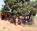 We zitten hier dus op het platteland van Uganda en kamperen bij een school (die zo te zien niet meer als school gebruikt wordt). Na de lunch gaan we op krakkemikkige fietsen richting het dorpje. Onderweg breekt er bij iemand een trapper af, is er een lekke band en een defect zadel, dat geeft wel de status van deze fietsen weer. We stoppen eerst bij een smid waar een demonstratie gegevens zou worden maar de smid is er niet, die was materialen aan het zoeken blijkbaar. We rijden door naar een door de bewoners zelf opgezette privé school waar we een rondleiding krijgen. Daarna gaan de kinderen voor ons zingen en dansen. Dat duurt allemaal wel wat lang en begint ook wat gênant te worden. De meeste van ons waren blij toen het eindelijk afgelopen was.