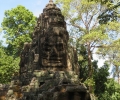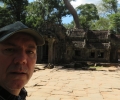 We gaan eerst naar Angkor Thom met daarin onder andere de prachtige Bayon tempel. Nagenoeg alles aan deze tempel is versiering in reliëf uitgehakt in steen, heel fraai en overal waar je kijkt. Angkor Thom is veel groter dan Angkor Wat en heeft nog veel meer gebouwen. Ik laat Yvonne en Hestia, die het klimmen niet zien zitten, achter en bezoek nog Baphuon, een grote tempel hier die weliswaar een stuk minder mooi gedecoreerd is, maar wel hoog. Er schijnt ook nog een paleis achter ze zitten hoor ik later maar zover was ik niet doorgelopen. Ik vind de dames weer terug en we lopen langs de olifanten terrassen en nog een prachtige muur met allemaal in detail uitgehakte danseressen door naar de parkeerplaats.