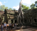 We springen weer in de elektrische karretjes en rijden door na Ta Prohm, beter bekend als de “Tomb Raider” tempel, omdat delen van die film hier zijn opgenomen. Deze is vooral mooi omdat ze grote delen niet gerestaureerd hebben en er dus nog bomen uit en over de stenen heen groeien. We lopen hier een uurtje rond en het us soms echt verdwalen en zoeken naar de mooiste en bekendste punten. Ik word ergens midden in de tempel wel een keer een beetje ‘eng’ van de hitte en de drukte dus tijd om de uitgang op te zoeken. We vinden onze karretjes weer aan de andere kant van het complex. Hier haal ik samen met Mirjam een ijsje en een heerlijke fruit smoothie met ijs terwijl we wachten op de rest. Als iedereen er weer is gaan we lunchen.