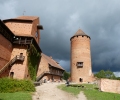 We rijden eerst nog binnen Letland naar het Gaujas national park waar we een paar kastelen bezoeken. Eerst gaan we naar de kasteel ruïne bij het plaatsje Sigulda. Hier hebben we een drie kwartier om rond te kijken en veel meer is ook niet nodig. Het is niet zo groot en met wat houden constructies is geregeld dat je toch nog een beetje omhoog kan klimmen. Het tweede kasteel wat we bezoeken is het Turaida kasteel. Dit complex is veel groter met ook nog wat oude bijbehorende gebouwen in de buurt zoals een smidse, een badhuis, stallen, etc. Het stikt hier wel van de wespen die je continu van je af moet slaan. Een van de torens heeft van die hele smalle stenen trapjes die door de kasteel muur lopen en ik krijg daar spontaan een claustrofobische reactie op en ga er dus snel weer uit. Verder is er nog de kamer waar blijkbaar de bisschop van Riga vandaan werkte en nog wat andere ruimtes met exposities.