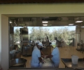 Daarna is er nog een klein museum en (uiteraard) een shop waar ze voornamelijk leer verkopen, maar voor een portemonnee voor 90 euro, een riem voor 110 en tasjes van een paar honderd euro is niet veel interesse, blijven hollanders hé. De kaas zelf wordt niet verkocht, het is hier allemaal zonder conserveringsmiddelen dus dat blijft niet lang goed. Als laatste nog een proeverij van de mozzarella, ik ben zelf niet zo’n liefhebber, ik vind mozzarella altijd wat weinig smaak hebben. Linda heeft ook nog geregeld dat we allemaal een broodje met mozzarella en tomaatjes mee krijgen voor de lunch.