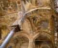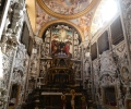De wandeling komt langs diverse kerken waarvan er in deze stad blijkbaar meer dan 100 zijn. Vlak bij ons hotel is de Piazza Pretorio met de Fontana Pretoria met allemaal beelden er omheen. Aan dit plein ook het Palazzo Pretorio en een kerk. Om de hoek de Santa Maria dell’Ammiraglio waar we naar binnen gaan. Veel pracht en praal in deze kerk, vooral de schilderingen aan de plafonds en veel goud mozaïek. Daarna lopen we naar de Chiesa del Gesu die er van buiten niet uit ziet maar van binnen weer prachtige plafondschilderingen en heel veel gedetailleerd marmeren ornamenten heeft. We lopen nog over een markt en dan door naar Piazza della Vittoria plein met de Kathedraal die van buiten mooi is maar van binnen wat tegenvalt ten opzichte van de vorige. Onderweg liepen we nog langs andere kerken maar die ga ik hier niet allemaal opnoemen.