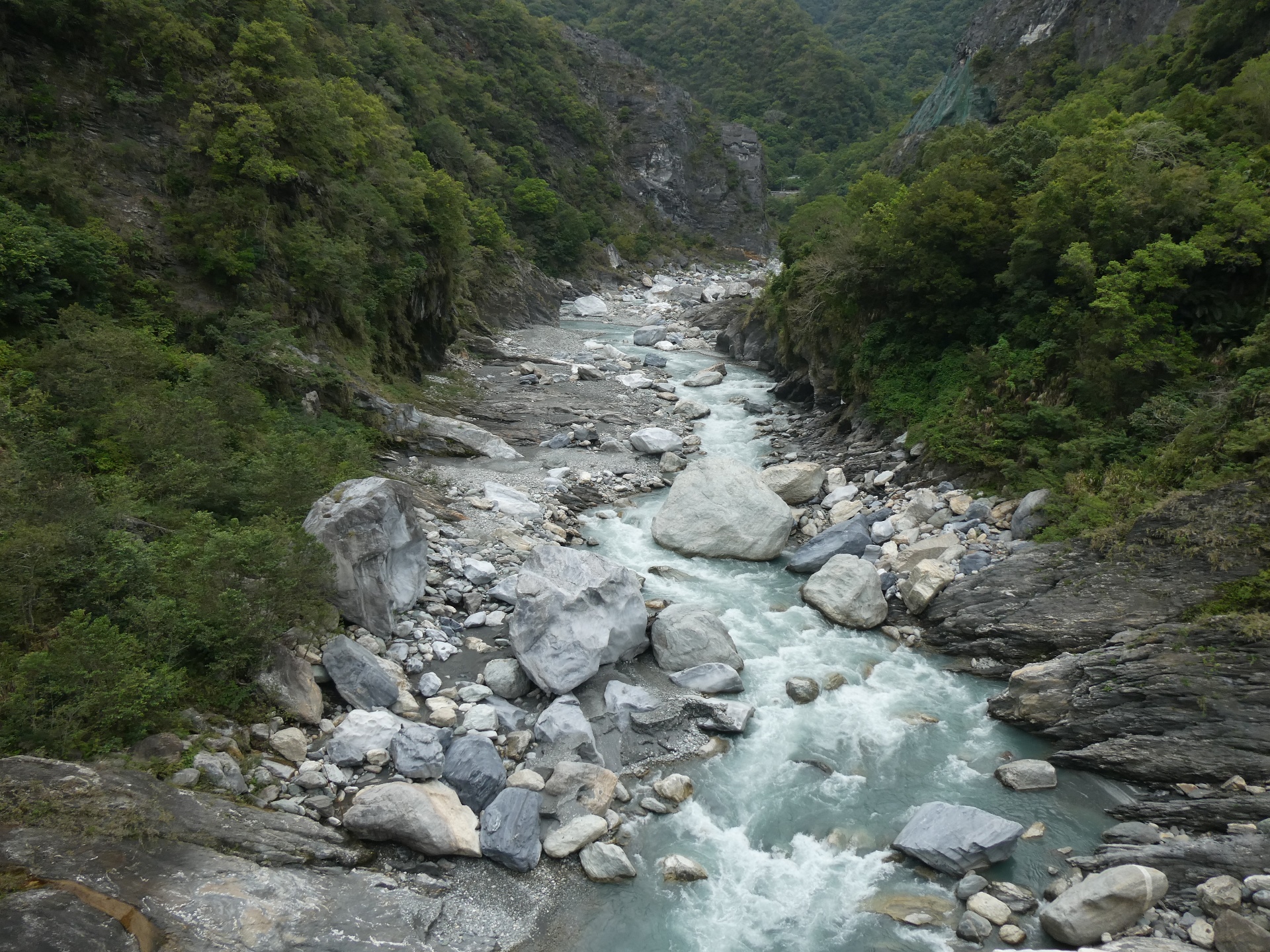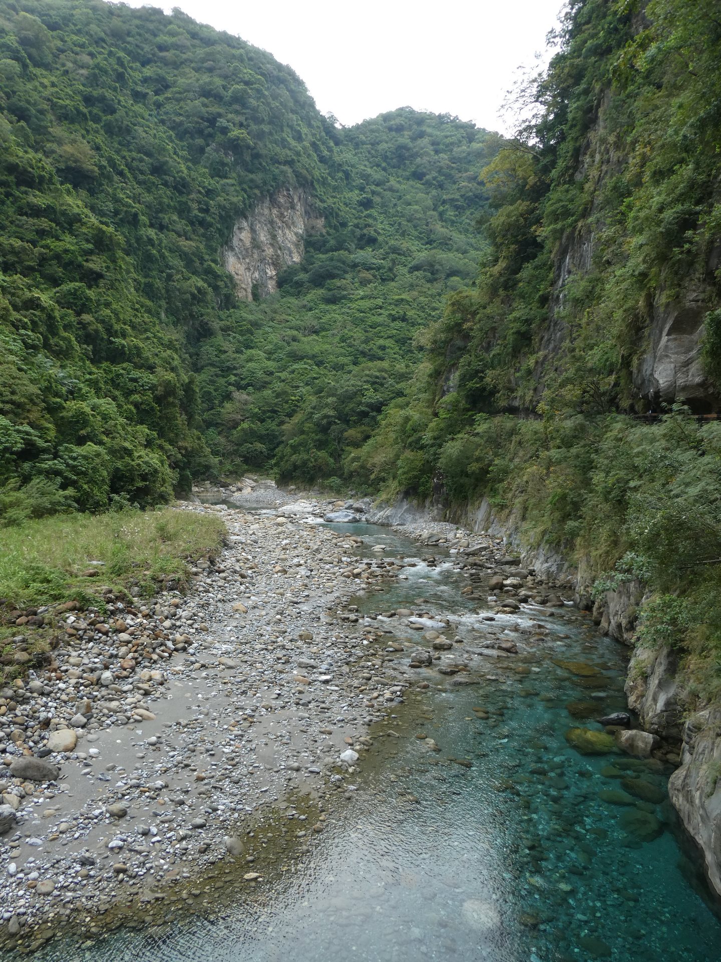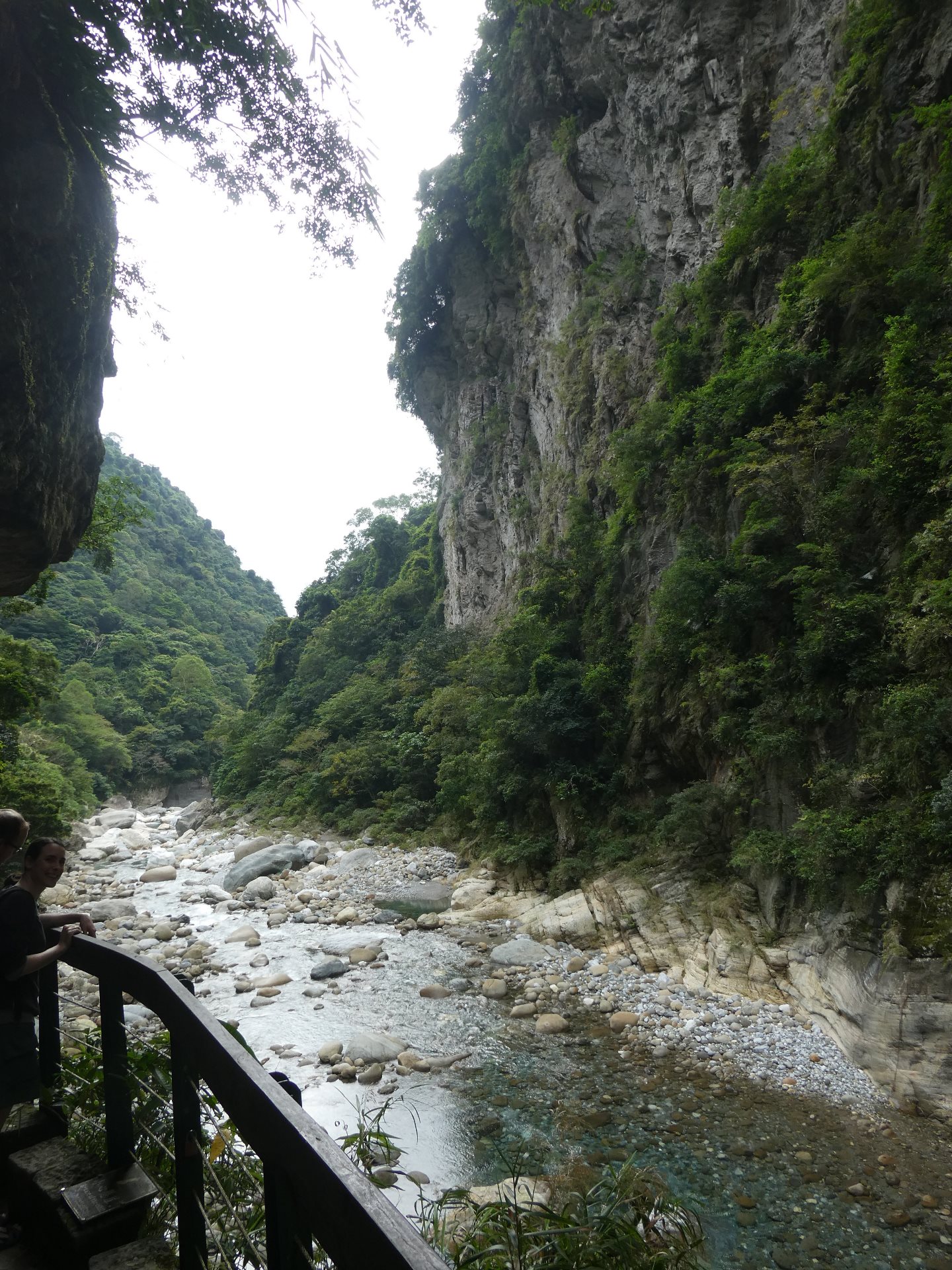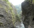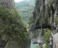 De derde trail was al helemaal een teleurstelling, na een kleine kilometer bleek het pad versperd en konden we niet meer verder. Een paar reisgenoten hebben nog een stukje van een ander pad geprobeerd maar dat was ook niet veel. De volgende stop was een hangbrug waar maar 8 personen tegelijk op mochten voor een paar foto’s, en daarna reden we naar de Changchun Shrine, ter nagedachtenis aan degenen die het leven lieten bij de bouw van deze wegen hier in de bergen. De laatste stop was bij het strand, om een beetje te slenteren en pootje te baden. Echt zwemmen is hier te gevaarlijk vanwege de stroming.